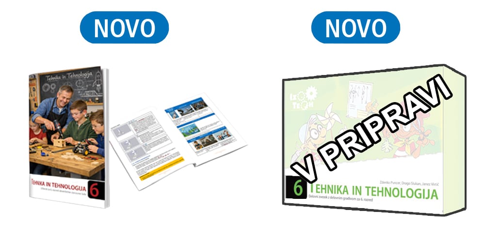 Za šolsko leto 2026/2027 pripravljamo nov učbeniški komplet za predmet TEHNIKA IN TEHNOLOGIJA v 6. razredu. Komplet bo sestavljen iz učbenika in delovnega zvezka z delovnim gradivom. V celoti bo sledil novemu učnemu načrtu in smernicam o uporabi učbeniških gradiv (ZRSŠ 2025). Vse dodatne informacije vam bomo posredovali v prihodnjih mesecih.